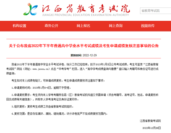 2022下半年江西高中學(xué)考成績(jī)公布!申請(qǐng)成績(jī)復(fù)核需注意這些事項(xiàng)