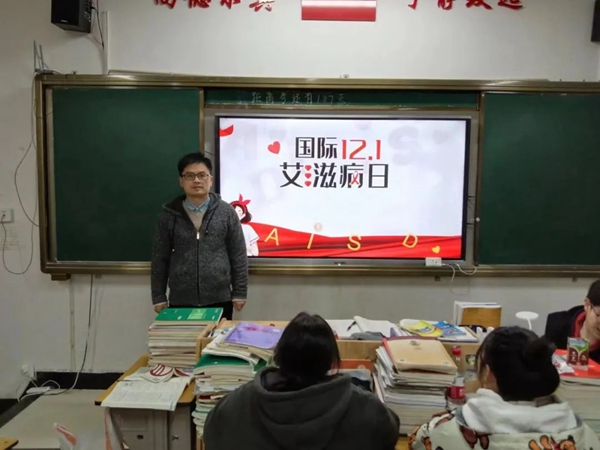 活動上,各班班主任通過播放短視頻、PPT等方式,重點圍繞“艾滋病的癥狀、傳播途徑、預(yù)防措施”等方面進行解讀,并結(jié)合生活中的實例,幫助學(xué)生全面掌握防艾知識,提高健康預(yù)防知識。
